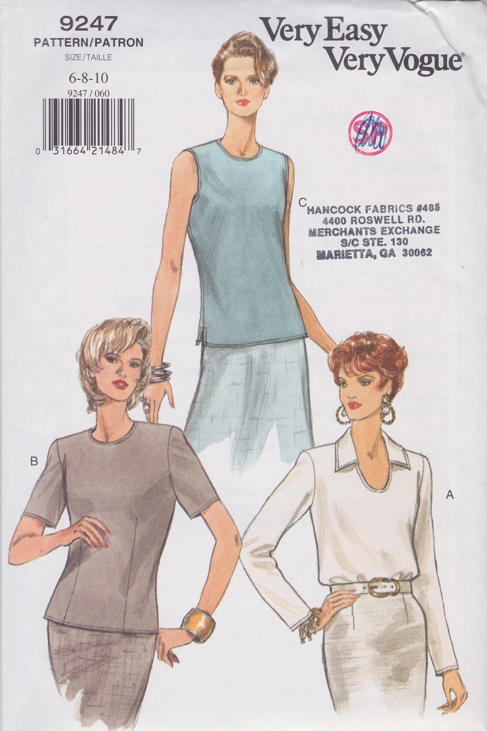 Very Easy Vogue 9247 Vintage Sewing Pattern Blouse Shirt Etsy Hong Kong